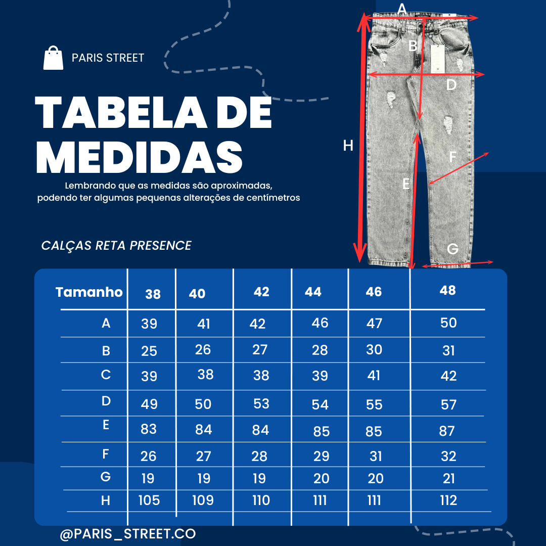 A Calça Jeans Reta Presence traz o corte clássico que nunca sai de moda, com caimento perfeito e qualidade premium do jeans 100% algodão (sem elastano).
